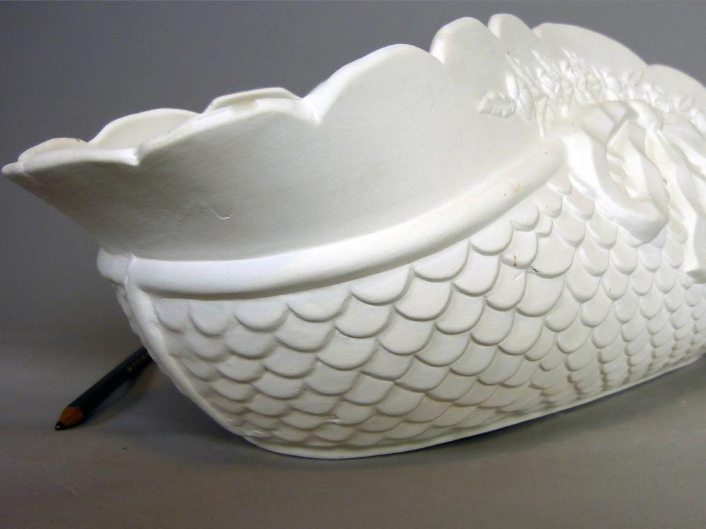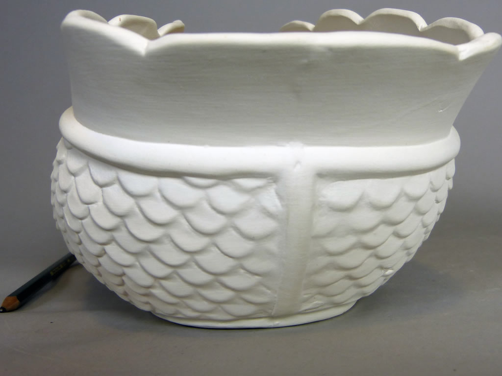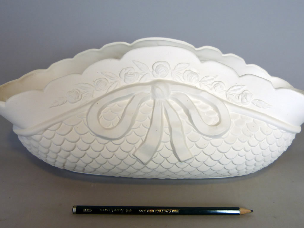 Esta pieza se puede pintar sobre bizcocho y poner una cubierta transparente, cristalina o esmaltar en blanco o cualquier otro color. La cesta de lazos grande de bizcocho blanco es cocido a 1050°. Consúltenos »